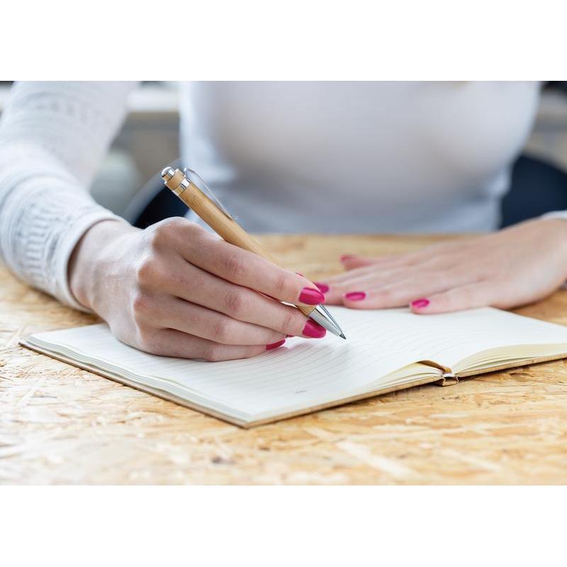 eco-neutral® Bamboo ballpoint pen with metal ring and clip. German Documental